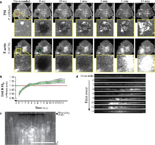 Plasma membrane and cytoskeleton dynamics during single-cell wound healing.