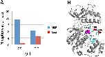 Fig. 3. Activity of recombinant MAPK at different pH and Xenopus MAPK structure. Specific phosphate incorporation into the recombinant Xenopus GST-MAPK (Auto, red bars) and the exogenous substrate (MBP, blue bars) at pH 7.5 and 6.5, as determined in the in vitro kinase assay, are presented in panel A. Modeled 3D structure of Xenopus MAPK is shown in B. The activation segment is shown in cyan, the catalytic residue (D152) is colored in magenta, and phospho-regulatory residues T188 and Y190 are shown in red. Bars in panel A represent SDs of four measurements. (For interpretation of the references to color in this figure legend, the reader is referred to the Web version of this article.)