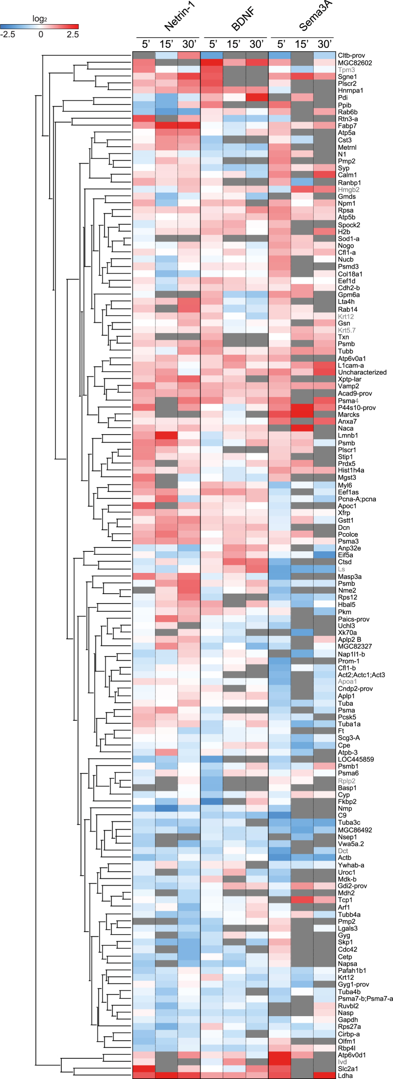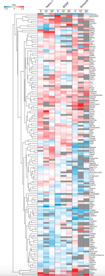 Genes referenced: actb bdnf gria1 map2 pdia2 pou4f1 rpsa sema3a sncg sp3 zic1