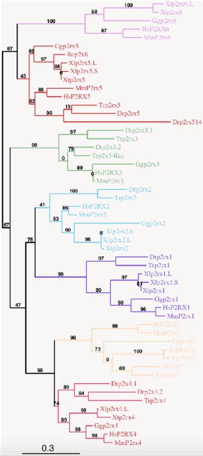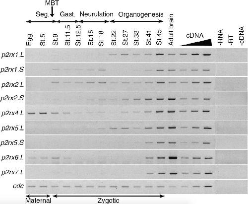 Genes referenced: gast odc1 p2rx1 p2rx2 p2rx4 p2rx5 p2rx6 p2rx7