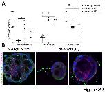 S2 Fig. Phenotypes derived from control and sh-daam1 knockdown. Daam1-depleted 3D MDCKII cyst were scored for the presence of (1) non-luminal ciliaâcilia that do not protrude into central lumen, (2) multiple lumens and (3) hollow lumens-luminal clearance. Twenty cysts were randomly selected for analysis in three independent experiments. A) The graph indicates the relative percentage of cyst for each phenotype. Error bars are shown as ± SD; Significance was calculated using unpaired, two-tailed t-test; ns indicates p > 0.05, * indicates p < 0.05, **p < 0.01 B) Representative images of cysts with non-luminal cilia phenotype. In Daam1-depleted cysts, white arrows point at cilia protruding out into extracellular matrix. Scale bars equal to 10 μm. |