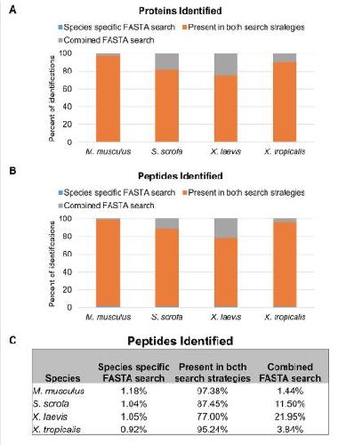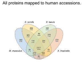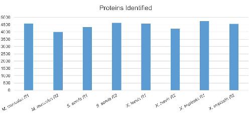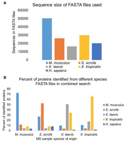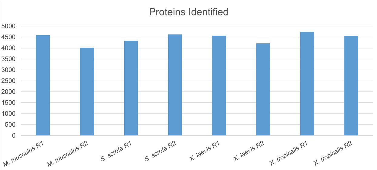 S3 Fig. Total proteins identified. (A) M. musculus, (B) S. scrofa, (C) X. laevis, and (D) X. tropicalis. |