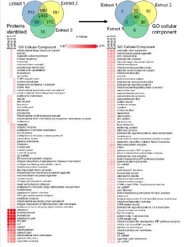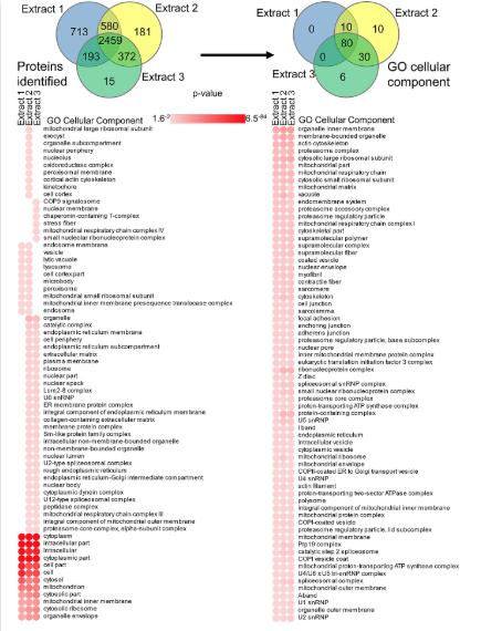 S4 Fig. Examination of extract subproteomes. GO cellular component terms and p-value enrichments are shown for terms enriched in each extract. GO, Gene Ontology. |