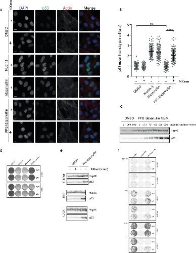 mean p53 intensity per nucleus in cells treated as in (a).35 (c) Representative Western blot showing p53