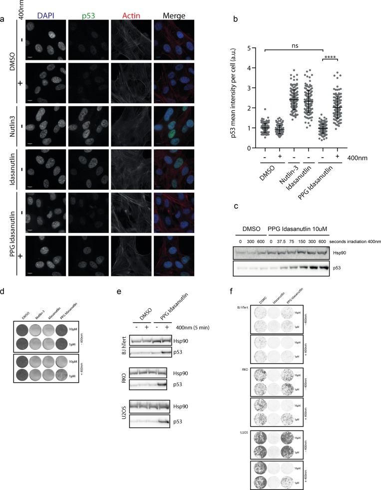 after PPG-idasanutlin treatment +400 nm irradiation for 5 min. (e)