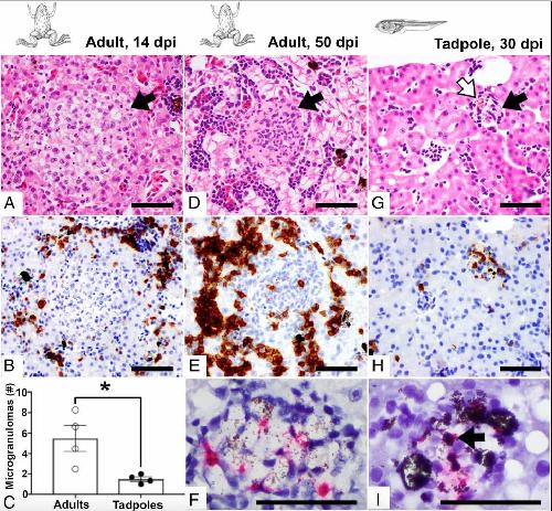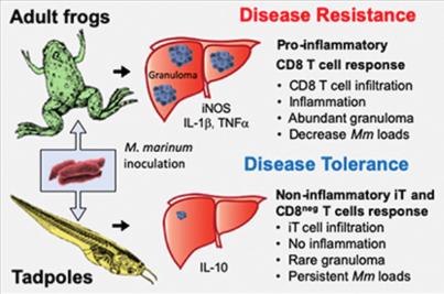 Distinct Host-Mycobacterial Pathogen Interactions between Resistant Adult and Tolerant Tadpole Life Stages of Xenopus laevis.