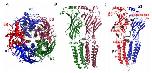 indicate the location of mutations on the first 2 subunit, and red circles, purple squares, and blue circles indicate location of mutations on the second, fourth,