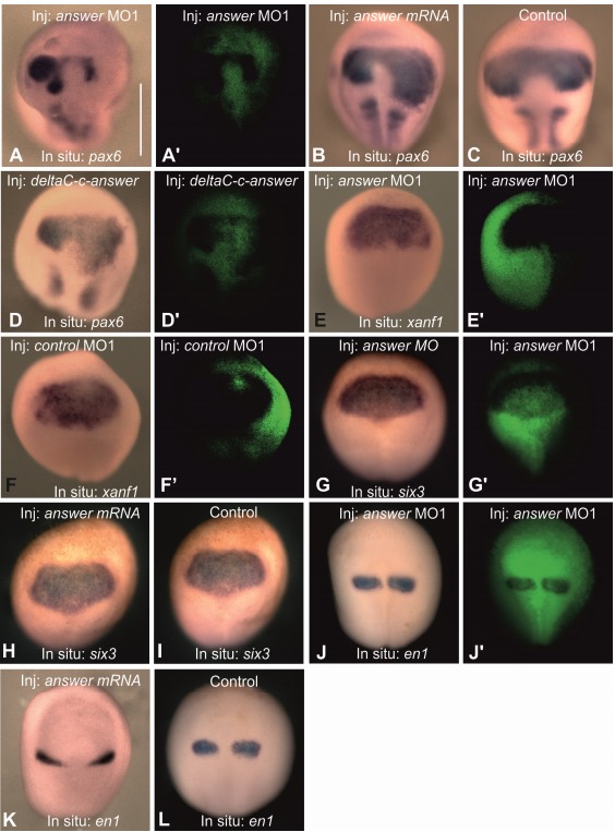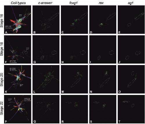 Genes referenced: ag1 en1 fgf20 fgf8 fgfr1 fgfr2 fgfr3 fgfr4 foxg1 foxo1 hesx1 mbp msx1 myc npl odc1 p2ry1 pax6 piezo1 pnhd ptma ras-dva1 ras-dva2 rax sfrpx six3 trim25 wnt5a