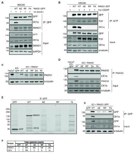 Figure 1. . Pathogenic PPK point-mutations in PAWS1 disrupt its interaction with CK1α.
