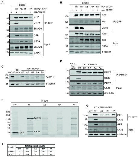 G: PAWS1-GFP or the indicated mutants were stably expressed in PAWS1-KO HaCaT cells as described in (