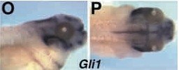 gli1.1 (GLI family zinc finger 1, gene 1 ) gene expression in Xenopus laevis embryo via in situ hybridization, NF stage 41, lateral view, head only, anterior right.