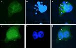 Fig 1. Fluorescent staining of early stages of Litoria caerulea PAK infection by Bd.