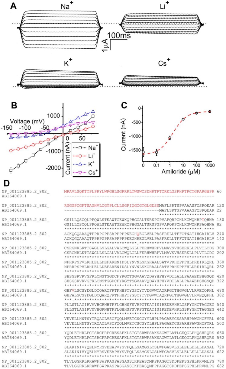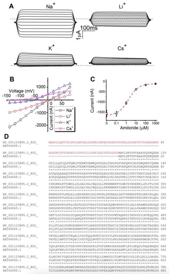 Ji, The role of Pre-H2 domains of alpha- and delta-epithelial Na+ channels in ion permeation, conductance, and amiloride sensitivity. 2004, Pubmed , Xenbase