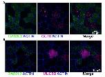 Figure S3: GAS2L2 is not expressed in airway secretory cells: Normal HBE cell were cultured at ALI and whole cultures were stained for GAS2L2 (green) and A) CC10, a club cell specific marker (n=3) or B) MUC5B a goblet cell specific marker (n=3). |