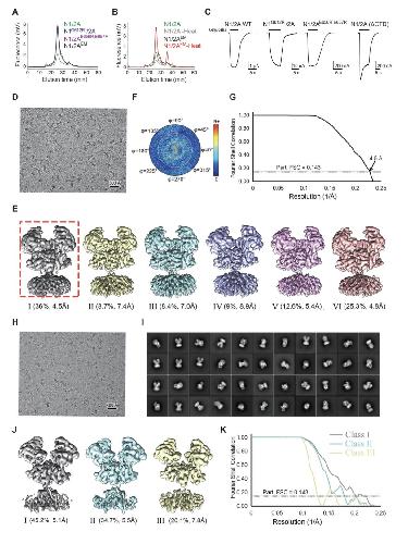 (D) A representative micrograph of the glycine/glutamate-bound GluN1/GluN2A receptors at pH 7.8. (E) 3D classification yielded into six classes for GluN1/GluN2A receptors at pH 7.8, whereas the class I containing the largest population was used for further 3D refinement.