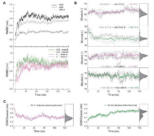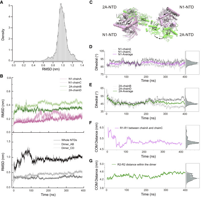 (A) Distribution of the Cα RMSDs of the tetrameric NTDs.