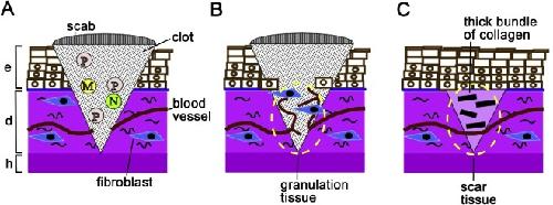 Fig. 2. Scar-forming skin wound healing in an adult mammal.