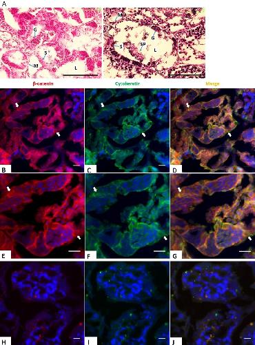 Figure 2. Expression of E-cadherin and β-catenin in Sertoli cells during testicular