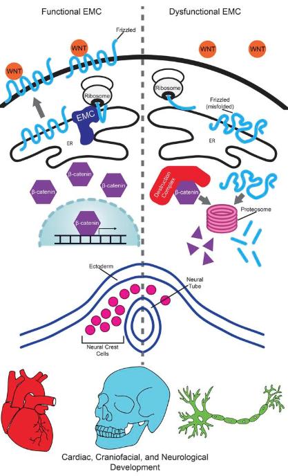 Disrupted ER membrane protein complex-mediated topogenesis drives congenital neural crest defects.