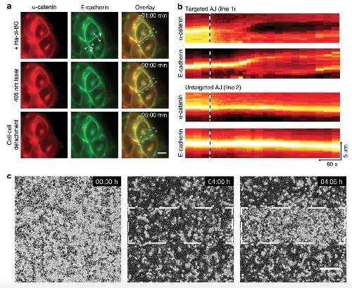 An optochemical tool for light-induced dissociation of adherens junctions to control mechanical coupling between cells.