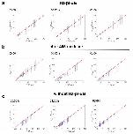 Supplementary Figure 9: Comparison with 1D tension. Plots of s!!(�,�) ' (y-averaged xcomponent of the BISM stress) vs. 1D tension t () (as in Fig. 6 and Supplementary Figure 7). Error bars are standard deviations. The red lines are the bisectors y = x for comparison. Unit: Pa µm. |