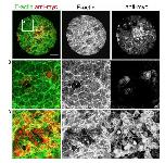Supplementary Figure 2: F-actin and ZO-1 co-localize on the boundary of epithelial cells. Aggregates expressing ZO-1 RFP (red) and stained for F-actin (green) reveal co-localization of tight junctions and circumapical actin in epithelialized cells (white) in both control and Calyculin A treated aggregates. Inset regions from first and third rows (white boxes) are shown in second and fourth rows, respectively. Scale bars are 100 µm for all panels except insets. |