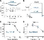 Figure 3. Biophysical properties of TASK-1 blockade by ranolazine. (A) The inhibition of TASK-1 current is displayed over a 7.5 s test pulse from −80 mV to +20 mV (n = 6). (B) Representation of the first 1000 ms of (A) on a logarithmic time scale (n = 6). (C) Frequency dependency of TASK-1 blockade by ranolazine; current amplitudes obtained during 30 min stimulation from −80 mV to +20 mV at stimulation rates of 0.1 Hz and 1 Hz are displayed under control conditions and during administration of 300 µM Ranolazine (n = 5–6). Currents are normalized to their respective values after a stabilization period. Data are given as mean ± SEM. |