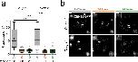 Fig. 3. Live-imaging of differentiating Deup1â/â ependymal cells reveals normal, step-wise kinetics of centriole amplification.(a) Box (25 to 75%) and whisker (10 to 90%) plots of A- (Gray), G- (Orange), and D- (Green) phase duration in differentiating Centrin 2-GFP Deup1+/+ and Deup1â/â ependymal cells using time-lapse microscopy. A = amplification phase, G = growth phase, D = disengagement phase; n > 3 cultures/genotype. The total number of cells per genotype at each phase (# cells) is indicated. P values, unpaired, two-tailed, Welchâs t-test. n.s.=not statistically significant (p > 0.05).(b) Still images from time-lapse videos of Centrin 2-GFP Deup1+/+ (Supplementary Video 1) or Deup1â/â (Supplementary Video 2) ependymal cells in the amplification (A), growth (G) or disengagement (D) phase. Arrow heads and zoomed regions mark the parent centrioles. X marks Centrin 2-GFP aggregates resulting from expression of the Centrin 2-GFP transgene25. Scale bars represent 2 μm. |