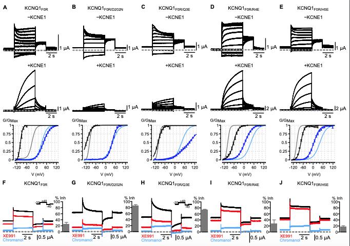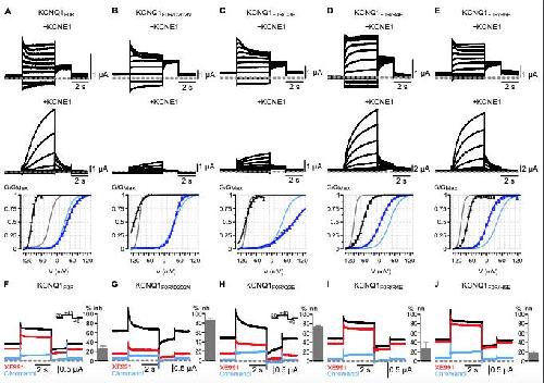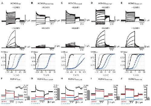 Barro-Soria, KCNE1 divides the voltage sensor movement in KCNQ1/KCNE1 channels into two steps. 2014, Pubmed