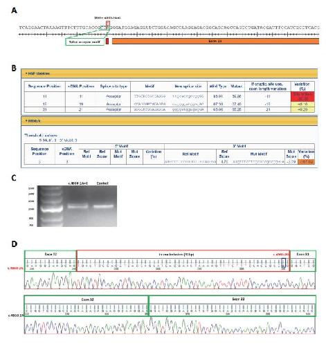 Desmet, Human Splicing Finder: an online bioinformatics tool to predict splicing signals. 2009, Pubmed