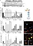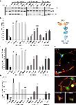 Figure 3. Mapping of the Mutation Sites on the 3D Structure of the TRIO Spectrin 7 Repeat Domain and GEFD1(A) Species conservation of the residues in TRIOâs seventh spectrin repeat, which is mutated in neurodevelopmental diseases. Identical residues are labeled in red, and similar residues are in blue. The positions of the residues p.Thr1075, p.Arg1078, and p.Asn1080 are boxed in black and indicated on top of the sequence, which encompasses amino acids 1053 to 1091, corresponding to the second α helix of the spectrin repeat. Represented species are Homo sapiens (h), Mus musculus (m), Rattus norvegicus (r), Xenopus laevis (x), Danio rerio (z), Drosophila melanogaster (d), and Caenorhabditis elegans (ce).(B) Lateral view of the structural model of the seventh spectrin repeat of TRIO. The spectrin domain was modeled based on the crystal structures of human beta2-spectrin (PDB ID 3EDV30) with our sequence alignment and SWISS-MODEL server.32 Parts of the structure that were modeled with high and low confidence are in blue and cyan, respectively. Mutations within the spectrin domain seen in affected individuals are indicated in red.(C) Axial view of the cross section of the structure at the site of the mutations. Mutations are indicated in magenta.(D) Sequence alignment of the RAC1-specific DH1 domain of TRIO (and KALIRIN) across evolution. Identical residues are labeled in red and similar residues are labeled in blue. The α helices are depicted schematically on top of the sequence alignment. The positions of the alterations p.Glu1299Lys, p.Arg1428Gln, p.Pro1461Leu, p.Pro1461Thr, and p.His1469Arg are indicated in bold and boxed in red. Each mutation affects a highly conserved residue within helices α-1, α-5, and α-6, which make contact with the target GTPase RAC1. Represented species are Homo sapiens (h), Mus musculus (m), Rattus norvegicus (r), Xenopus laevis (x), Danio rerio (z), Drosophila melanogaster (d), and Caenorhabditis elegans (ce).(E) Structure of the DH1 domain of TRIO (cyan) in complex with the small GTPase substrate RAC1 (green). Mutations within the DH1 domain seen in affected individuals are indicated in red and can be seen to occur at the protein-substrate interface. The complex was modeled with the crystal structures of DH1 (PDB: 1NTY) and the complex with substrate (PDB: 1KZ7). Figures of the protein structures were generated with PyMol.33(F) Most of the GEFD1 mutants are affected in their ability to bind to RAC1N17 (DN). Immunoblot analysis of a Streptavidin pulldown assay of biotinylated TRIO variants. HEK293T cells were transfected with the indicated biotinylated GFP-TRIO variants and RAC1N17. TRIO was pulled down with Streptavidin beads, and the co-precipitating RAC1N17 was detected with a RAC1 antibody. |