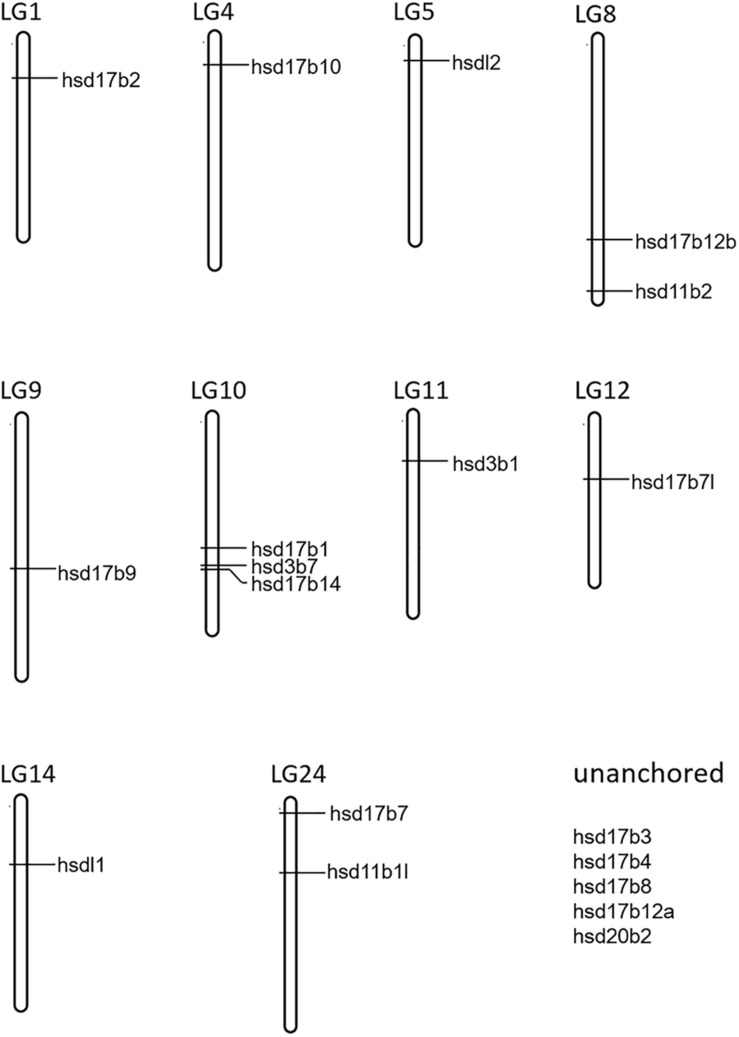 FIGURE 1. Chromosome localization of 19 β-hsd genes from orange-spotted grouper.