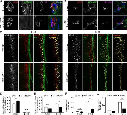 Site-directed MT1-MMP trafficking and surface insertion regulate AChR clustering and remodeling at developing NMJs.