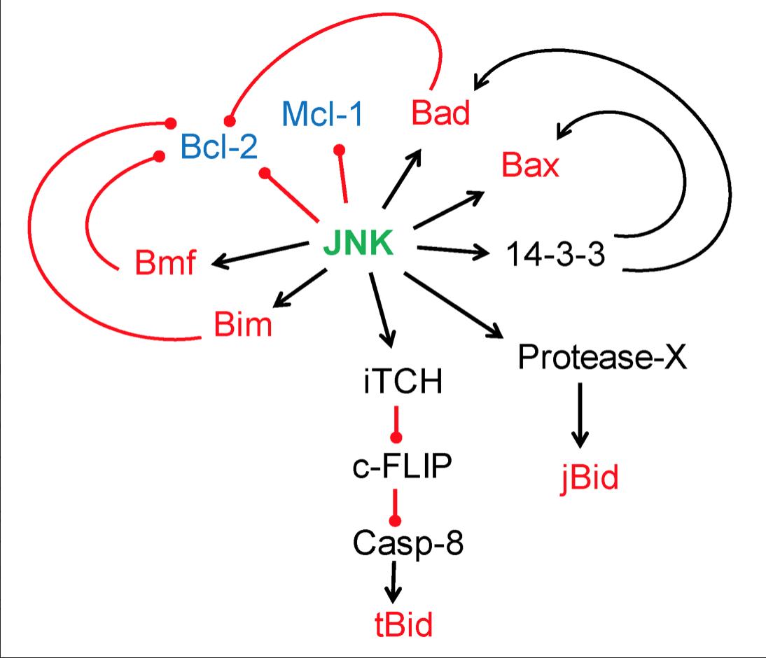 Yu, JNK suppresses apoptosis via phosphorylation of the proapoptotic Bcl-2 family protein BAD. 2004, Pubmed