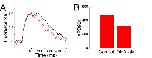Figure 8- DHA-glycine decreases the APD90c of hiPSC cardiomyocytes. (A) Normalized representative CaT optical traces before (black) and after applied (red) 30 µM DHA-glycine on a monolayer of hiPSC-CM. (B) APD90c (ms) value in control conditions (black) and after applied (red) 30 µM DHA-glycine on hiPSC-CM (mean ± SEM; n = 3). *p<0.05. |
