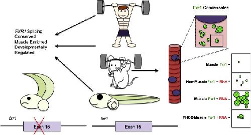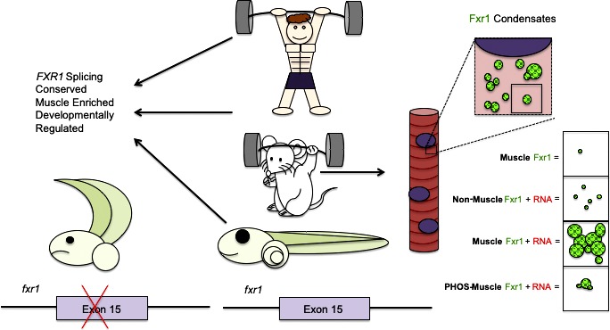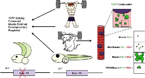 FXR1 splicing is important for muscle development and biomolecular condensates in muscle cells.