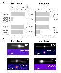Figure 3: Condensin extrudes DNA loops in metaphase and cohesin extrudes loops in interphase. (A) Loop extrusion probabilityâthe frequency at which looping occurs on a strand with sufficient slackâin metaphase and interphase under different depletion conditions. In metaphase, co-depleting condensin I, condensin II, and H3-H4 (using anti- XCAP-C/E and anti-H4K12Ac) significantly (** represents p<0.01, Binomial test) reduced loop extrusion probability, whereas the same depletion condition in interphase had no effect on loop extrusion probability compared to H3-H4-depleted extract. However, depleting cohesin and H3-H4 (using anti-XRAD21/XSMC1 and anti-H4K12Ac) had no effect in metaphase, though significantly (p<0.01) decreased loop extrusion probability in interphase compared to H3-H4-depleted extract. (B) Snapshots of antibody stainings of representative loops in metaphase and interphase. (Top) In metaphase, Alexa488-labeled anti-XRad21 bound to cohesin does not localize to the loop, whereas in interphase (right panels), the anti- XRad21 co-localizes to the loop. (Bottom) Alexa488-labeled anti-XCAP-C bound to condensin localizes to the loop in metaphase, but does not localize to the loop in interphase. |