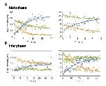 Supplementary Figure 4: Examples of symmetric DNA loop extrusion in metaphase and non-symmetric loop extrusion in interphase. We quantified the amount of DNA inside the loop (blue dots) and the regions left and right of the loop (region I in orange and region II in green) from the relative integrated DNA fluorescence intensities in each region for each time point. The lines represent exponential fits to the data. (A) Examples of metaphase looping events exhibiting symmetric loop extrusion where DNA is reeled in from both regions outside of the loop. (B) Examples of non-symmetric loop extrusion events in interphase, showing one-sided reeling of DNA into the loop from only one region outside of the loop. |