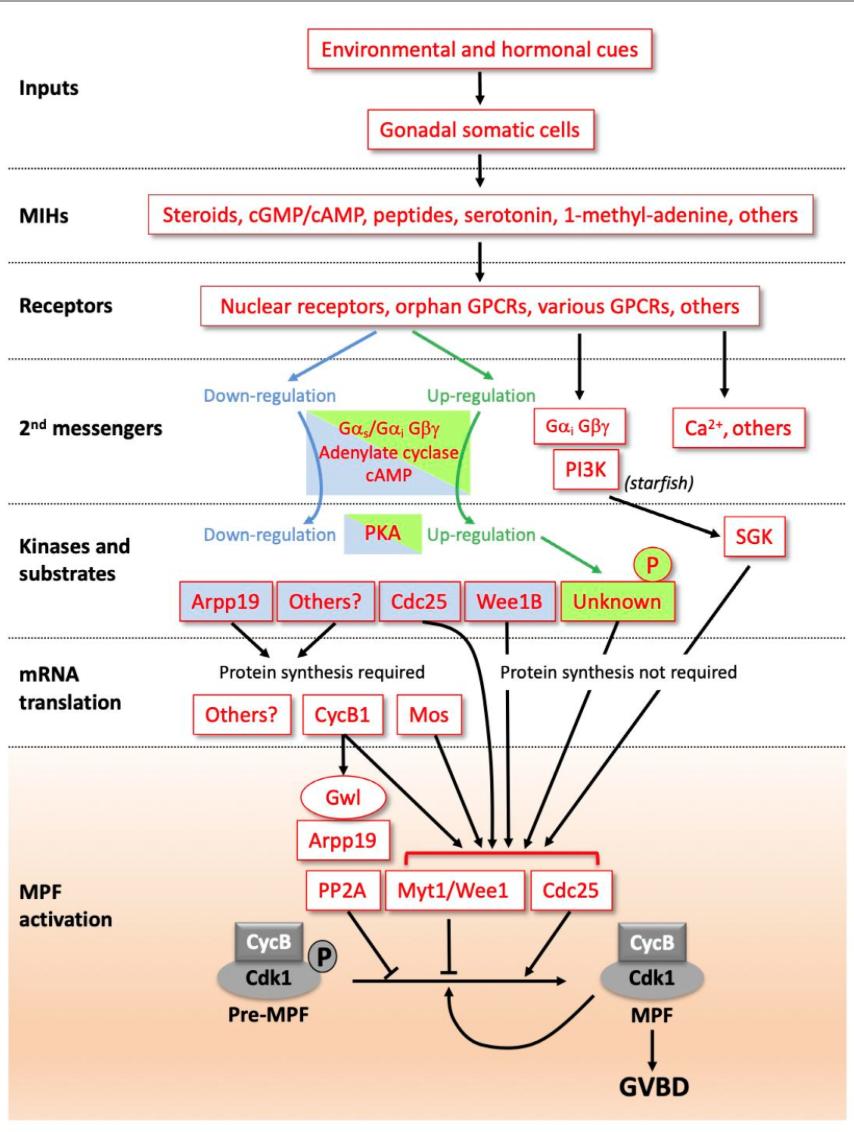 Genes referenced: arpp19 camp cdk1 gprc6a mastl mos pbrm1 ptpa rasgrf1 wee2