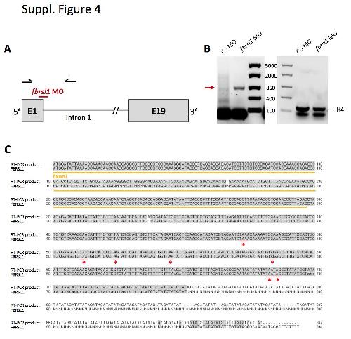 Supplementary Figure 4: Fbrsl1 MO blocks the exon 1/intron 1 splice site of fbrsl1.
