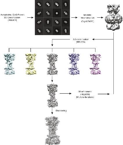 Scheres, RELION: implementation of a Bayesian approach to cryo-EM structure determination. 2012, Pubmed