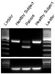 Figure 4. The c.1913 + 2T > G variant deletes exon 14. The RT-PCR analysis of cDNA from patient and control fibroblast using primers flanking exon 14 detected a 259 bp product in the patient. The PCR product obtained from healthy control individuals was 391 bp. A 100 bp DNA ladder was used as a marker to estimate the amplicon size.