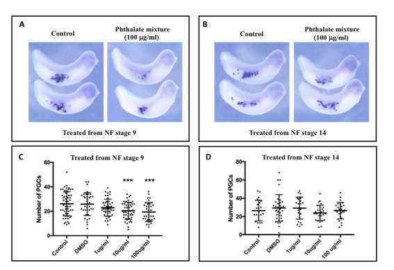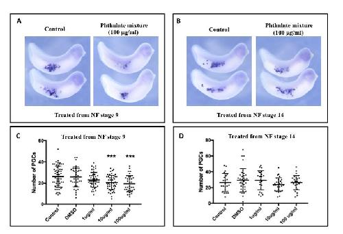 Assessing differences in toxicity and teratogenicity of three phthalates, Diethyl phthalate, Di-n-propyl phthalate, and Di-n-butyl phthalate, using Xenopus laevis embryos.