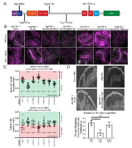 Yüksel, A homozygous frameshift variant in an alternatively spliced exon of DLG5 causes hydrocephalus and renal dysplasia. 2019, Pubmed