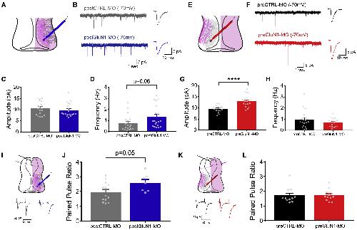 (K) Ratio of the sum of all responsive CSCs (on/off) in postCTRL-MO (n = 10, gray) and postGluN1-MO (n = 9, blue) conditions.