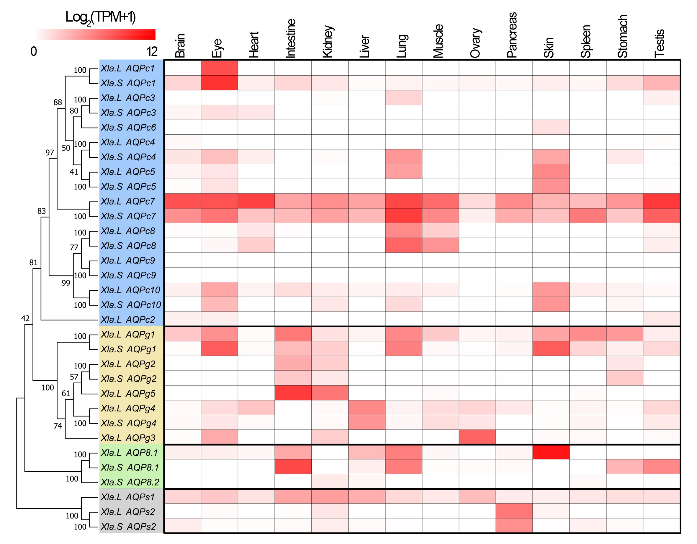 Heatmap of the AQP family expression pattern in different tissues or organs of adult X. laevis. |