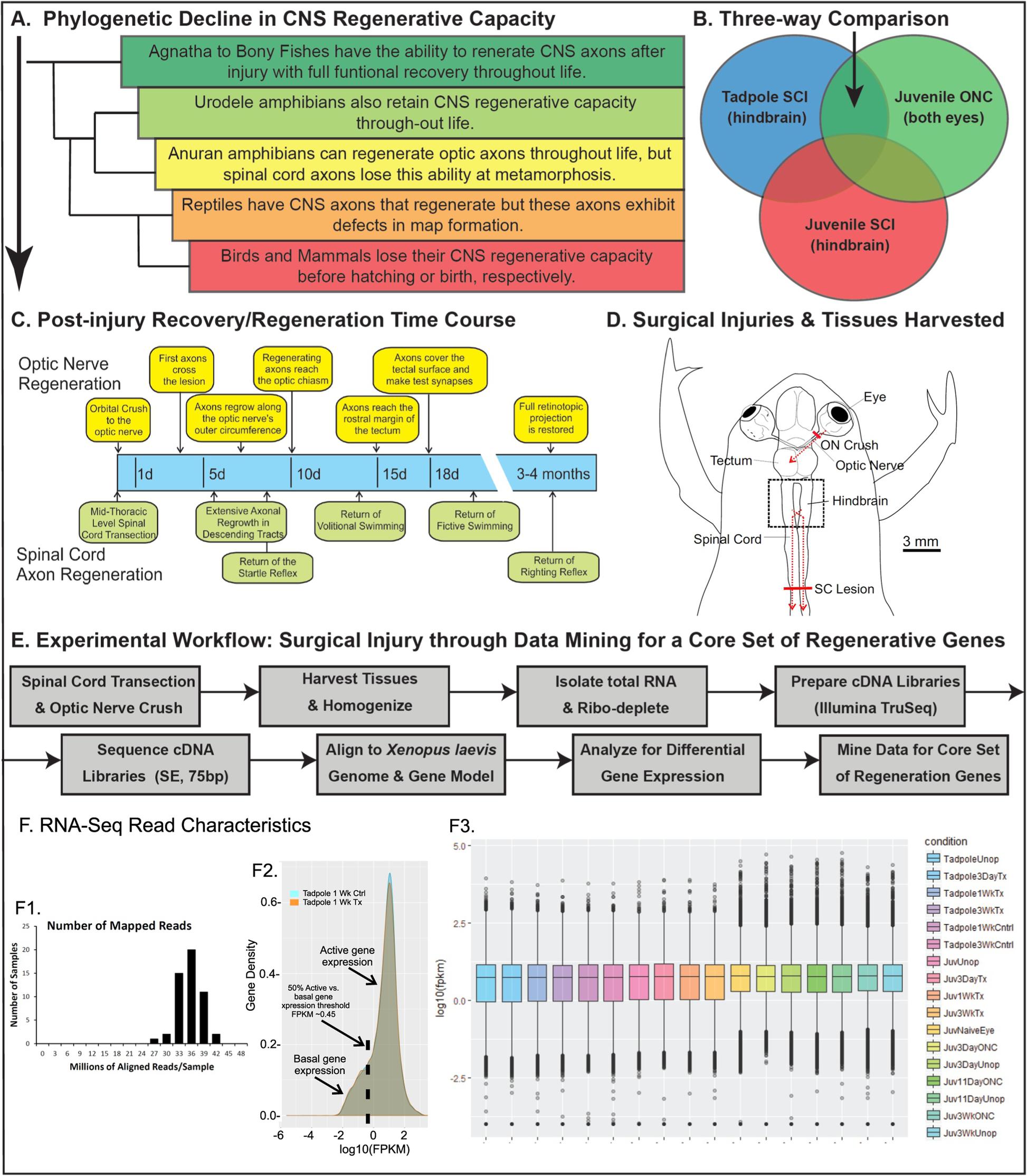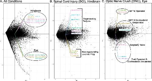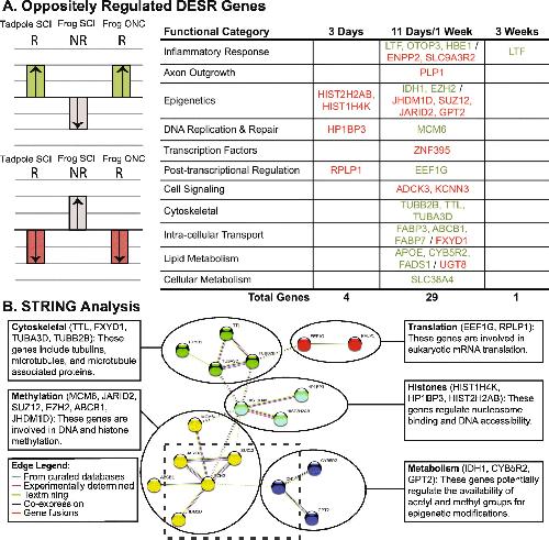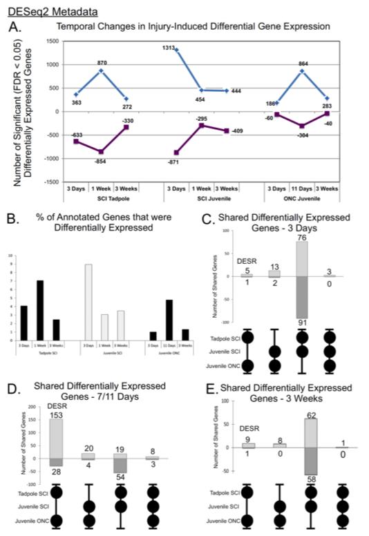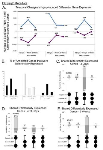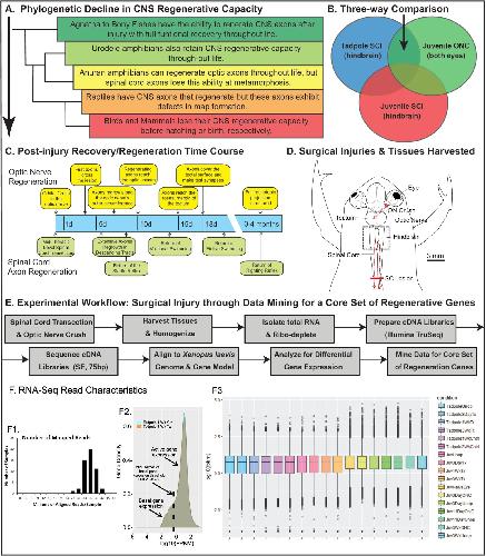 Comparative gene expression profiling between optic nerve and spinal cord injury in Xenopus laevis reveals a core set of genes inherent in successful regeneration of vertebrate central nervous system axons.