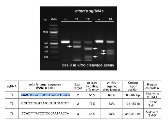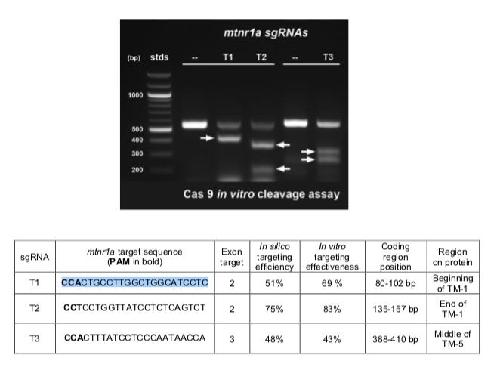 Lines/Strains: gRNAs referenced: mtnr1a gRNA1 mtnr1a gRNA2 mtnr1a gRNA3 mtnr1a gRNA4