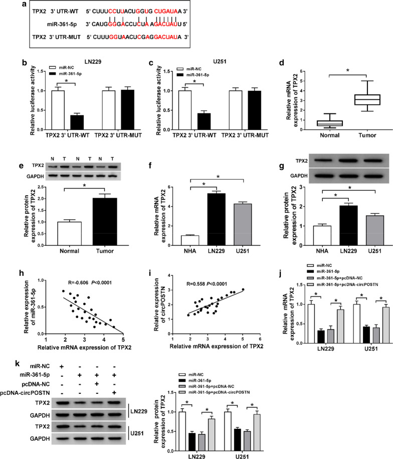CircPOSTN/miR-361-5p/TPX2 axis regulates cell growth, apoptosis and aerobic glycolysis in glioma cells.