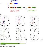 Figure 2. Schematic of CREMSCLE method. (A) Electroporation of large amounts of pCALNL-EGFP containing a floxed neogenin âstop cassetteâ does not lead to EGFP expression unless pCAG-Cre plasmid is co-expressed. The Cre recombinase removes the stop cassette flanked by loxP sites to allow the translation of EGFP. (B) When pCAG-Cre and pCALNL-EGFP are coexpressed in roughly equimolar ratios most cells will express EGFP. As the concentration of pCAG-Cre plasmid is reduced, keeping pCALNL-EGFP levels constant, only the very few cells that express Cre recombinase will activate pCALNL-EGFP to allow high levels of EGFP expression. |